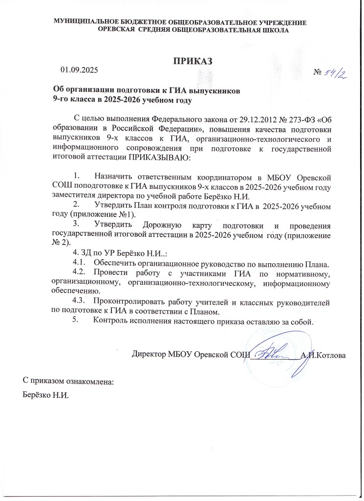 ПРИИКАЗ ОБ УТВЕРЖДЕНИИ ПОДГОТОВКИ И ПРОВЕДЕНИЮ ГИА.
