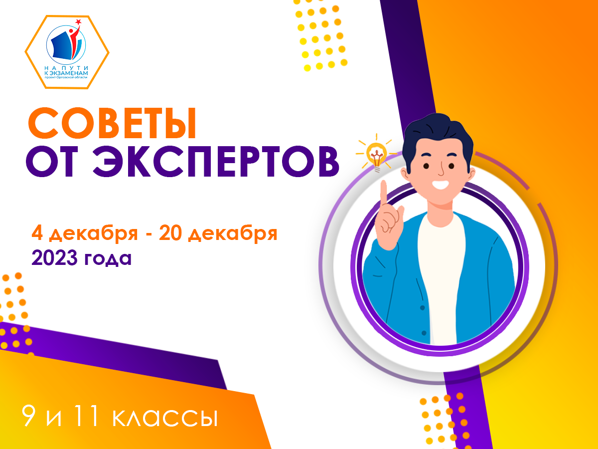 С 4 по 20 декабря 2023 года в официальной группе Департамента образования Орловской области в сети Интернет «В контакте»,  в «Телеграмм-канале», на образовательном портале obr57.ru, на официальном сайте бюджетного учреждения Орловской области «Региональный центр оценки качества образования», в официальных группах ОРЦОКО «В контакте» и «Телеграмм-канале» для выпускников 9 и 11 классов будут размещены информационные материалы от ведущих экспертов предметных комиссий «Советы экспертов» по вопросам подготовки к государственной итоговой аттестации.