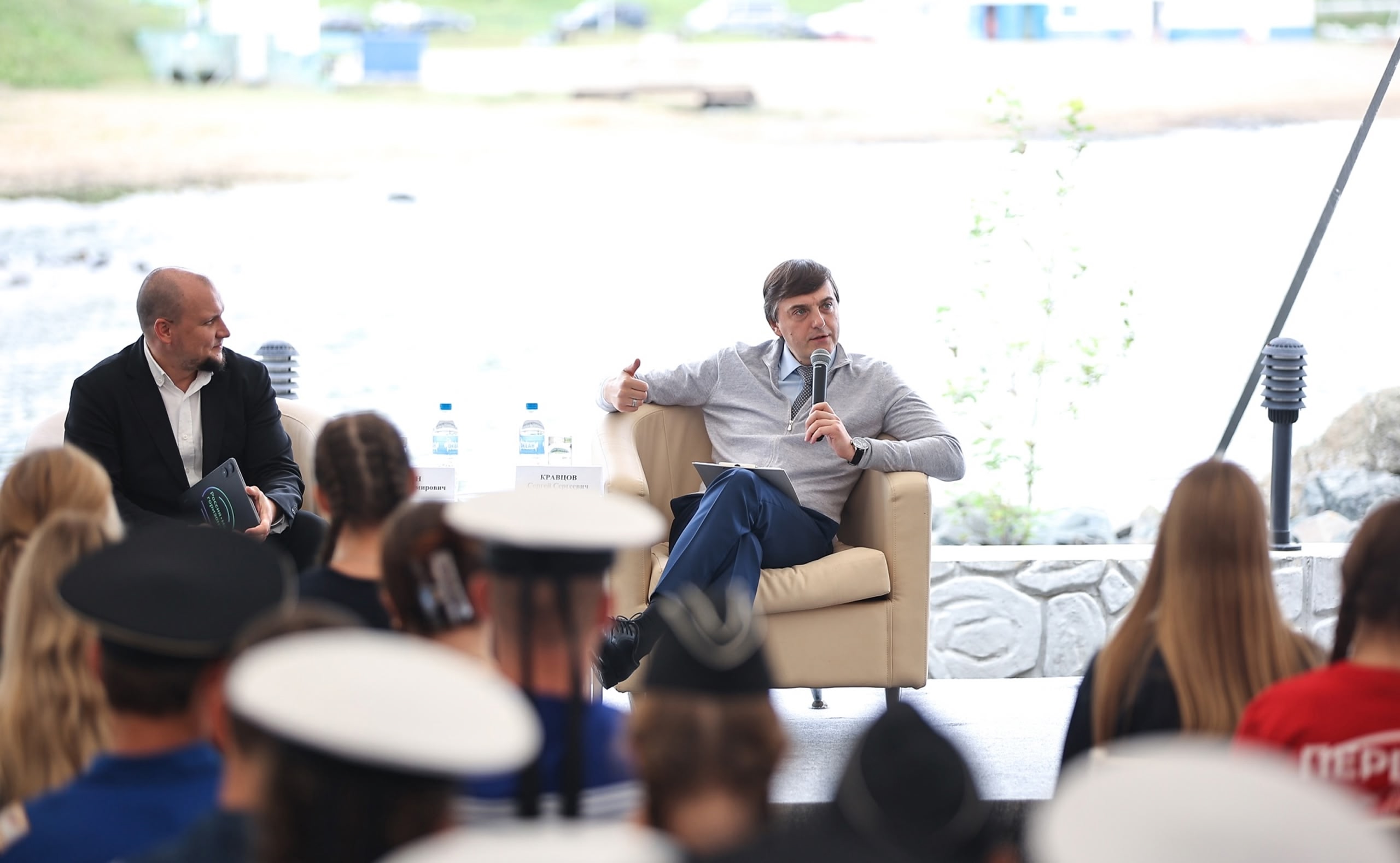 В ходе рабочей поездки во Владивосток глава Минпросвещения России Сергей Кравцов провел первое в новом учебном году занятие курса «Россия – мои горизонты» для 200 школьников – участников смены всероссийского детского центра «Океан».
